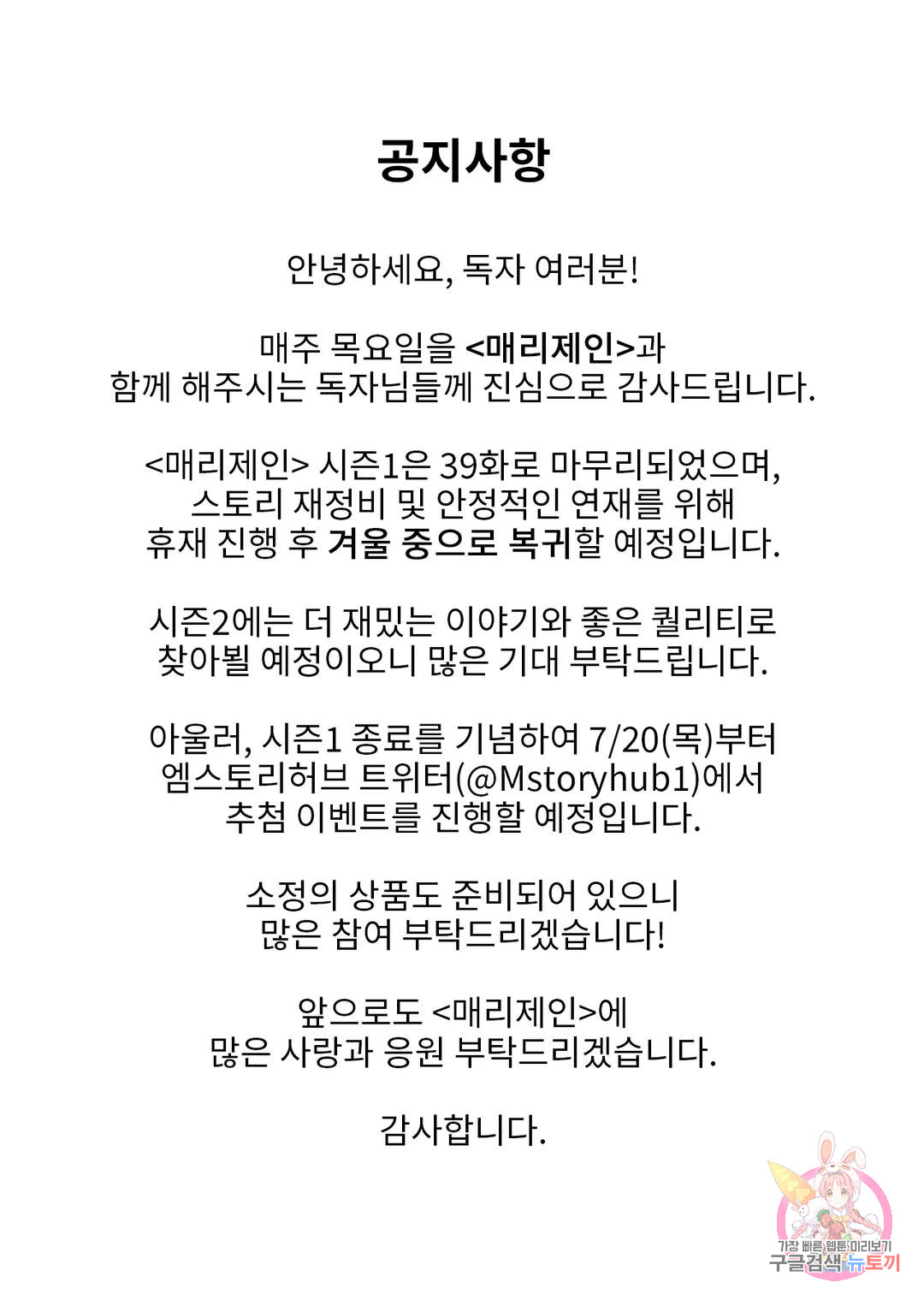 매리제인 공지 <매리제인> 시즌1 종료 공지